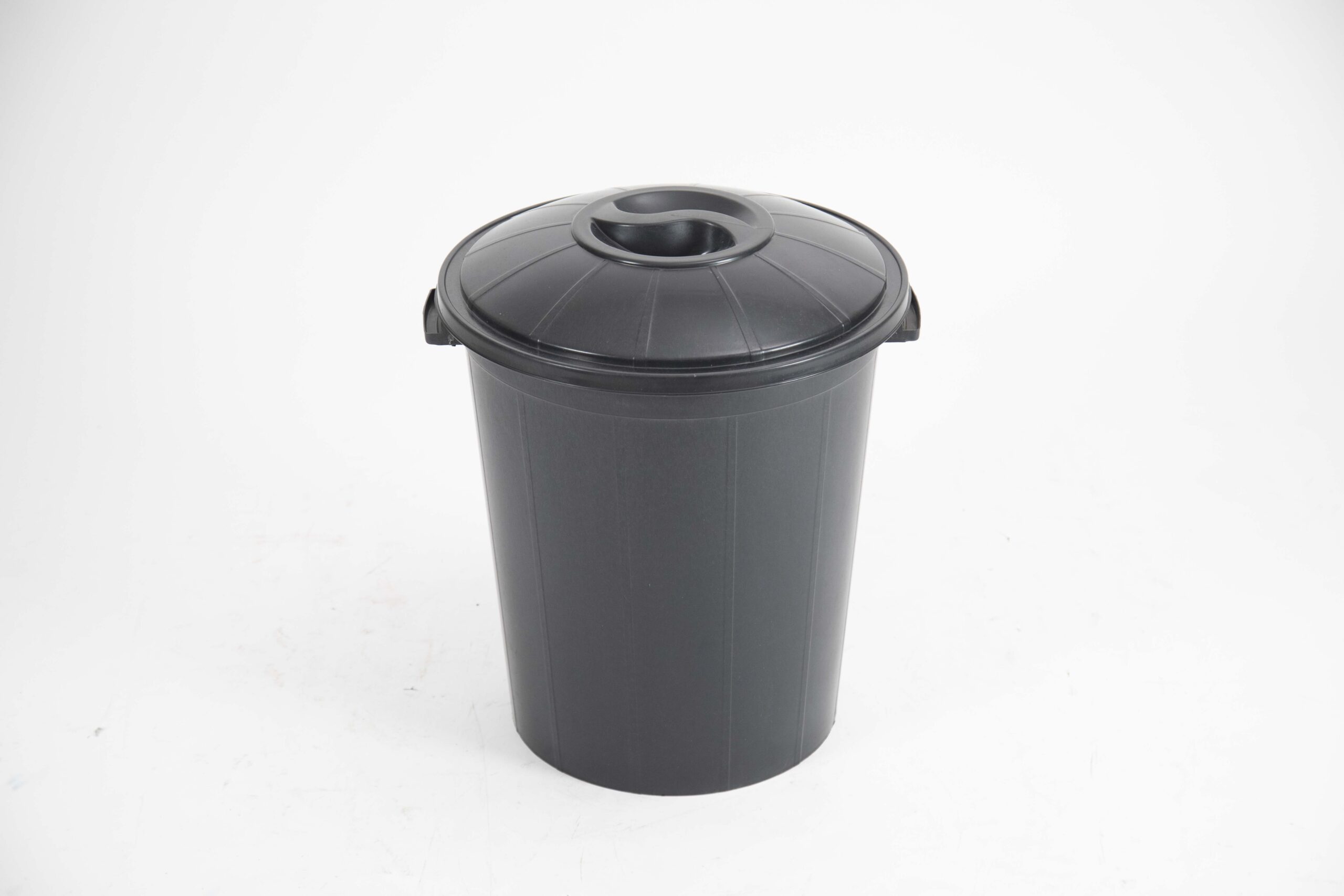 The dustbin 55-liter is made from strong, easy‑to‑clean plastic and includes a removable domed lid with a comfortable central grip.​