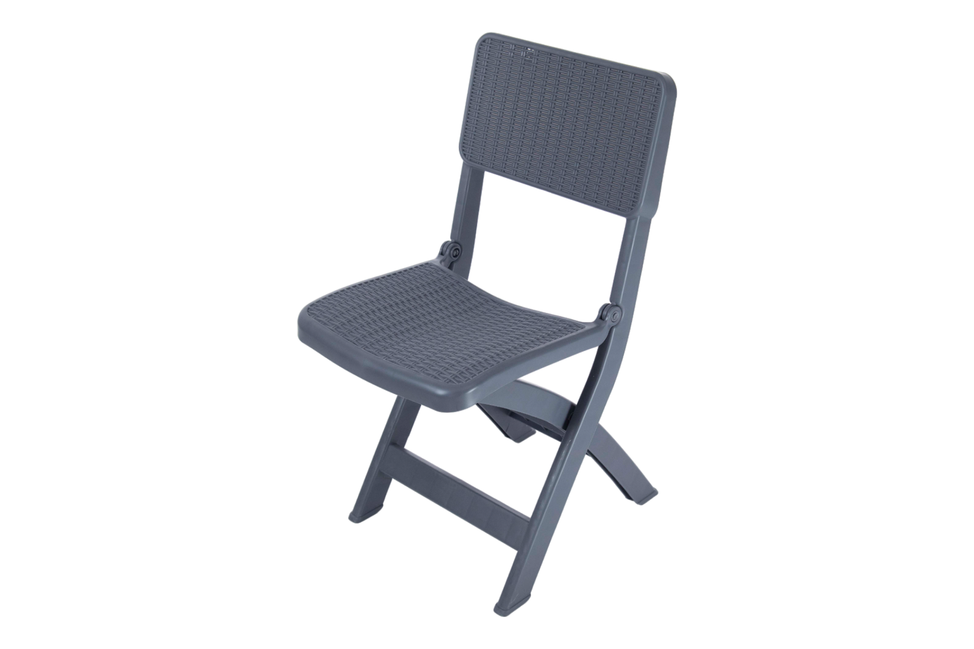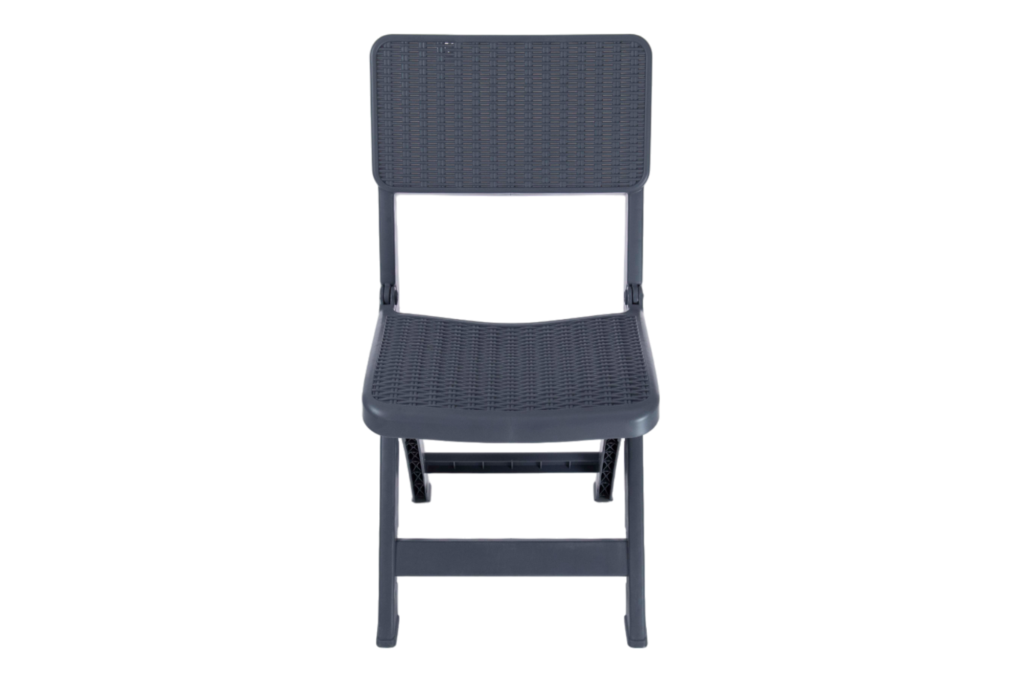 This Foldable chair features a rattan-texture seat and back for a smart look with space-saving storage.