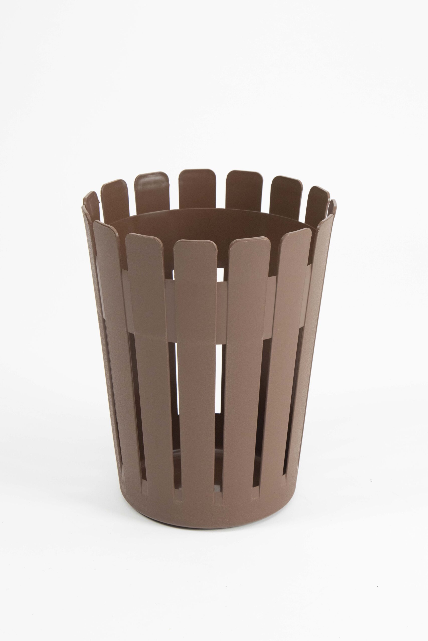 The Lotus waste basket features an airy slatted body, perfect for disposing of paper and dry waste